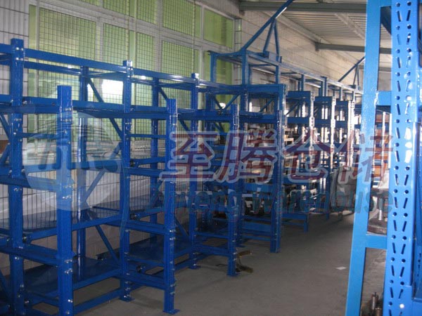 模具架又称抽屉式货架,模具摆放在模具架的每层抽屉层面上,通过轴承的作用,将模具抽出,再通过葫芦或行吊等吊装设备,将模具取出或存储。